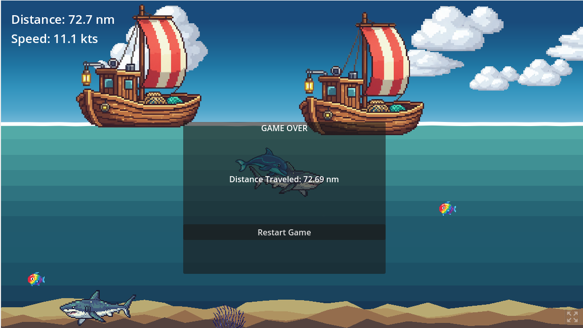 - Collect fish to get a speed boost